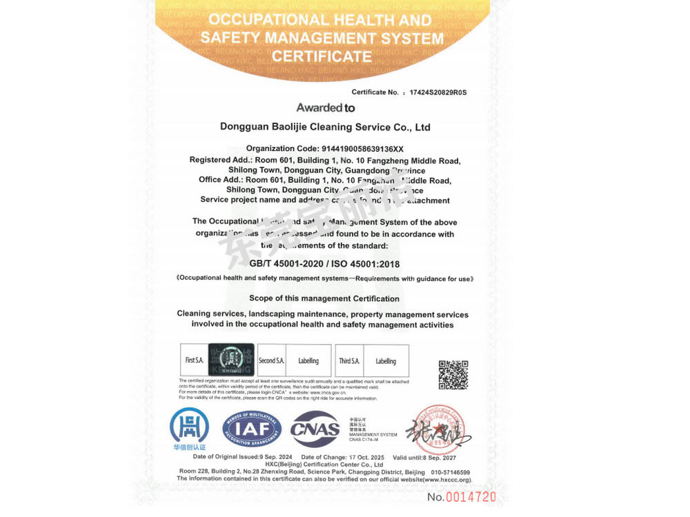 寶麗潔環境(jìng)管理體係認證(zhèng)書(shū)
